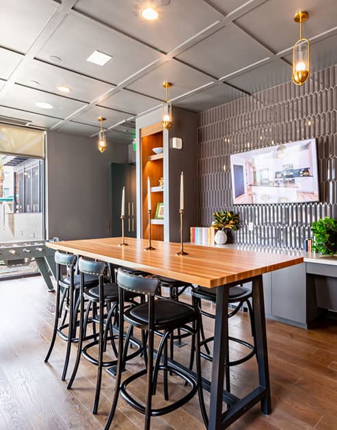 At MAA Val Vista, everyday living feels like a getaway. Designed with spaces inspired by destinations around the world, the community brings the resort experience home—without you ever needing to pack a bag. Start your morning with coffee in the bohemian-style lobby lounge, a welcoming space that’s just as suited for focused work as it is for casual conversation. You’ll also find several workspaces throughout the community, including work-from-home mini offices and private office booths when you need a quiet place to concentrate. When it’s time to move, head to our fitness center with an outdoor lawn for open-air workouts. We even offer free yoga classes to help you find your Zen. Cool off in the resort-style pool and spa, complete with lounge seating, umbrellas, cabanas, and outdoor ramadas. Or head to the outdoor grilling area and fire up the pizza oven for a fun way to cook and connect with your neighbors. The elevated clubhouse features an entertaining kitchen with bar seating, while the game room channels a hidden speakeasy vibe complete with foosball, billiards, and British tavern–inspired decor. Upstairs, the rooftop sky lounge offers both indoor seating and outdoor grilling areas with plenty of room to gather. A spacious breezeway lined with murals and hanging chairs creates another inviting spot to meet up with friends. And for your four-legged companion, there’s a shaded pet park and pet spa that welcomes all breeds designed to make them feel just as at home.