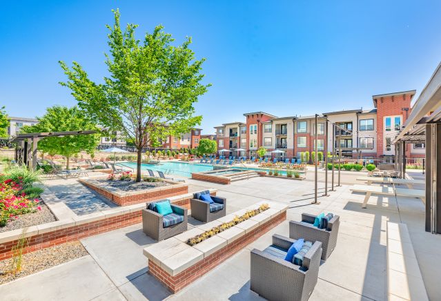 Luxuriate in our heated pool and outdoor spa. Take advantage of HIIT and yoga classes at our 24-hour fitness center. Enjoy the inviting atmosphere of our outdoor spaces, including a grilling area and an outdoor fire pit for cozy gatherings. There is an on-site playground that will give your kiddos plenty of room to play and explore. Plus, our dog park is ready to welcome your four-legged friend of any breed at our pet-friendly community! We also have a pet-washing station and a bicycle repair station for your