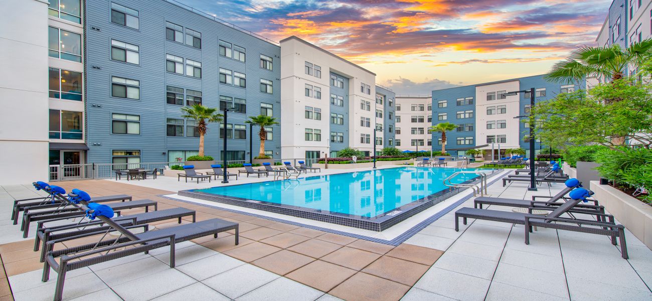 Enjoy lavish amenities, including a glistening saltwater pool with a sundeck overlooking the St. Johns River. Elevate your fitness routine in our well-equipped studio, featuring Echelon Bikes, mirrors, a designated stretch/yoga room, and TRX equipment. Relish outdoor moments with neighbors in the grilling area or entertaining kitchen. Connect to the world in the cybercafé and resident lounge at your doorstep. We have no breed or size restrictions at our pet-friendly community and a dedicated luxury pet spa. Plus, we have controlled access to entry and parking.