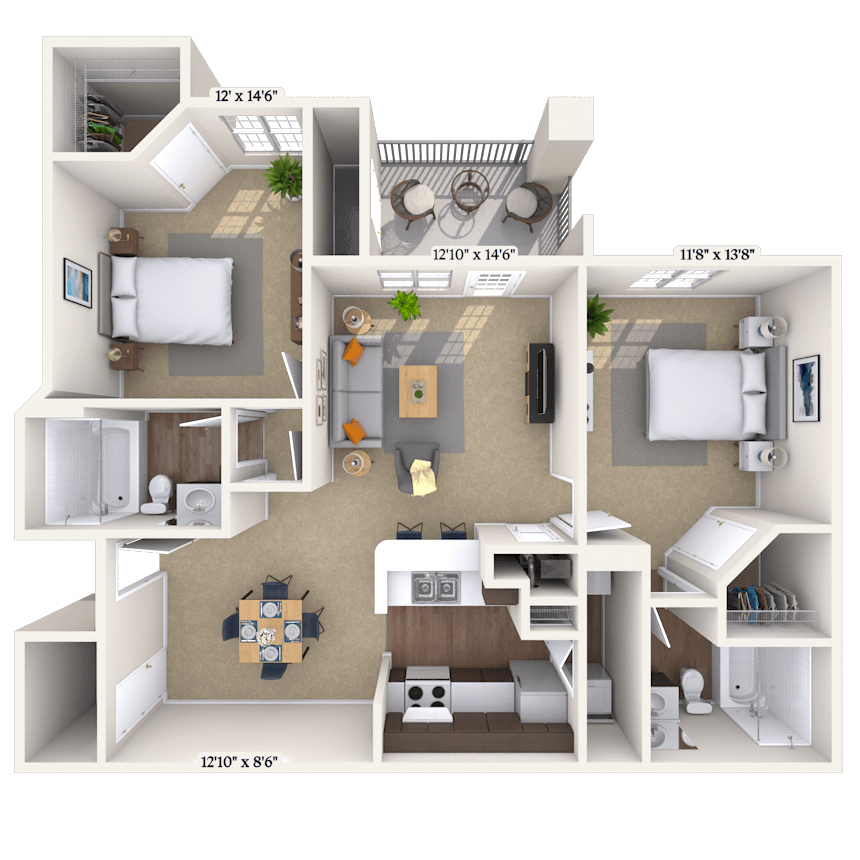 Floorplan images are for illustrative purposes only as square footage, dimensions, finishes, and layouts may vary between individual apartments. Contact the Leasing Office for details on specific apartment homes.