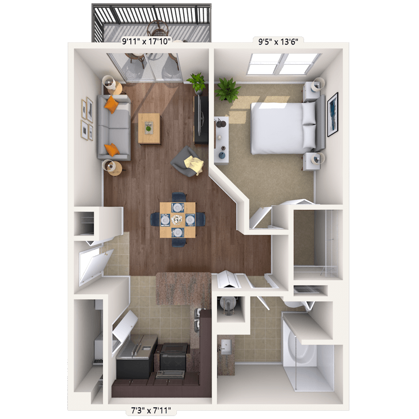 Floorplan images are for illustrative purposes only as square footage, dimensions, finishes, and layouts may vary between individual apartments. Contact the Leasing Office for details on specific apartment homes.