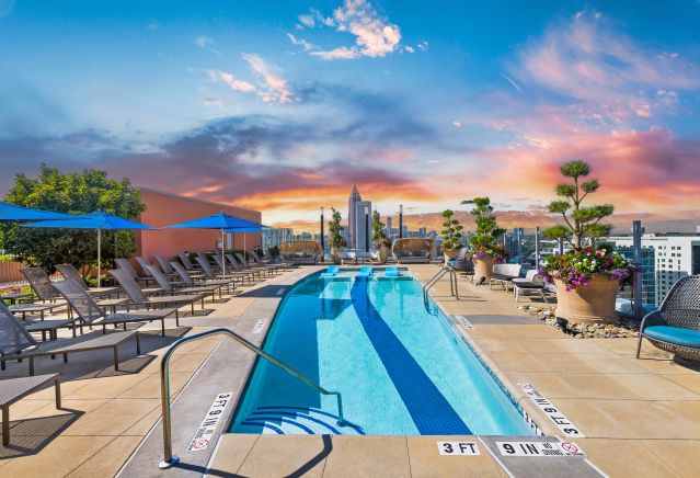 Relax in the rooftop pool or in the Sky Lounge. Work up a sweat at our 24-hour fitness center, complete with free weights and a yoga space. Wash and maintain your bike in the cycle room, or unwind in the resident lounge with billiards and a coffee bar. The dog park includes a pet spa and grooming area at our pet-friendly community, which welcomes all breeds. The building is wired with Google Fiber, which makes working from our business center and conference room a breeze. With first-class amenities like our 24 hour emergency maintenance, onsite courtesy office, 24 hour concierge service, gated community with controlled access entry, and dry-cleaning delivery, you will love every moment in your new home at MAA Midtown.
