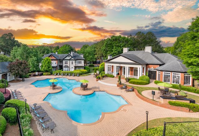 Our apartment homes in Duluth next to the Chattahoochee River are shaded and close to nature. There is plenty of space to lounge next to the sparkling pool. Residents enjoy amenities like our fitness center, which is spacious and well-equipped. You can also enjoy access to a business center and a coffee bar for work or relaxation. Work up a sweat with neighbors on our lighted tennis, pickleball, and sand volleyball courts. Host gatherings at the outdoor grill and picnic area or make some new friends at one of our planned resident events. Our pet-friendly community welcomes all breeds with no size restrictions. For your convenience, we have a Courtesy Officer, car wash area, and 24-hour emergency maintenance.