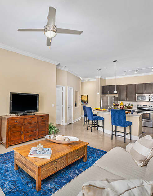 MAA Rivers Walk offers desirable studio, one-bedroom, two-bedroom, and three-bedroom apartment homes in Mount Pleasant. Enjoy cooking for guests from your spacious gourmet kitchen featuring granite countertops, stainless steel appliances, large kitchen islands, and designer finishes. Various options include wood vinyl flooring, hardwood, and polished concrete floors. You can easily connect your devices to MAA smart home technology, whether at home or on the go.