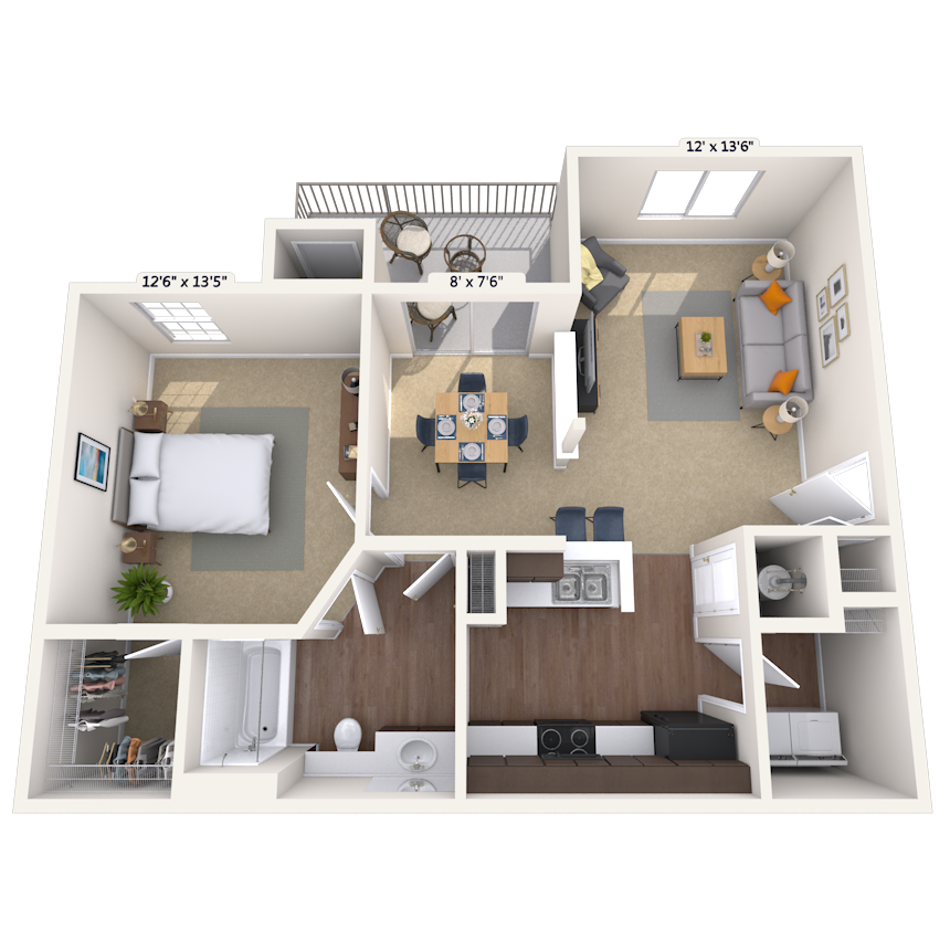 Floorplan images are for illustrative purposes only as square footage, dimensions, finishes, and layouts may vary between individual apartments. Contact the Leasing Office for details on specific apartment homes.