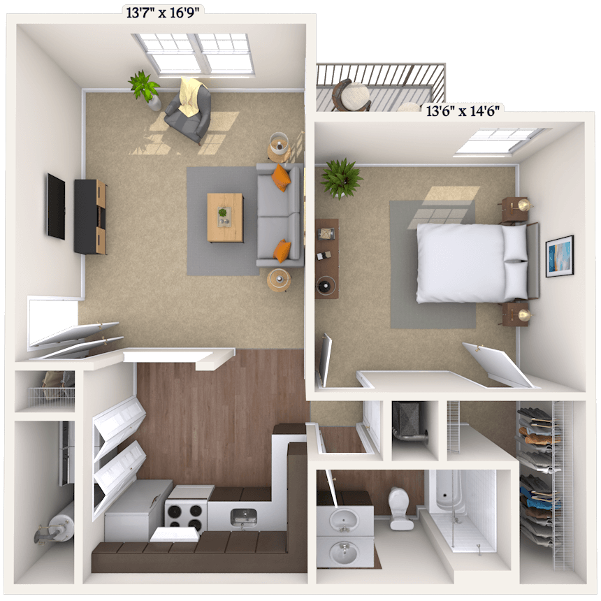 Floorplan images are for illustrative purposes only as square footage, dimensions, finishes, and layouts may vary between individual apartments. Contact the Leasing Office for details on specific apartment homes.