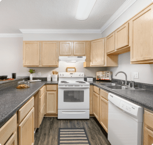 Choose from select one-bedroom, two-bedroom, and three-bedroom floor plans with custom flooring, brushed nickel fixtures and hardware, and gorgeous new appliances. All homes come equipped with smart home technology and in-unit washer/dryer. Many apartments also boast upgrades like ceiling fans, cozy fireplaces, patios, balconies, wet bars, and more. Storage, carports, and assigned covered parking are available.