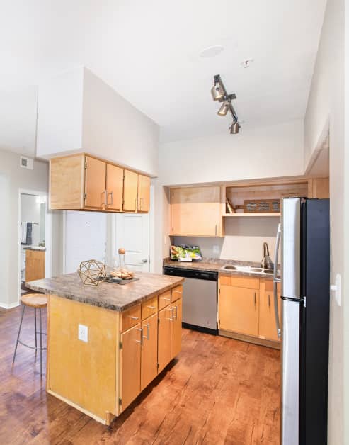 MAA Uptown Village is like a quiet small town in the middle of a big city. Our lofts, studios, and one-bedroom and two-bedroom apartment homes offer bedroom ceiling fans for comfort. Kitchens feature sleek stainless-steel appliances, with select homes offering a spacious island for effortless meal prep and entertaining. Bathrooms provide a touch of luxury with indulgent garden tubs, while high ceilings and open floor plans create an airy, expansive feel. Select apartments feature cozy fireplaces, private balconies, in-unit washer and dryer, and unique design details like spiral staircases. For those who love outdoor space, private yards offer a rare city escape. On-site storage units are available.