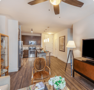 Our one-bedroom and two-bedroom floor plans are spacious and airy with walk-in closets, smart home technology, EV charging stations, stainless steel Whirlpool appliances, and an in-unit washer/dryer. For those seeking an extra touch of luxury, select apartments boast high end finishes that enhance your living space. Upgrades include faux wood flooring, granite countertops, kitchen islands, stylish backsplash in the kitchen, relaxing soaking tubs, bedroom ceiling fans, and private balconies.