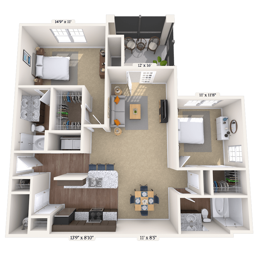 Floorplan images are for illustrative purposes only as square footage, dimensions, finishes, and layouts may vary between individual apartments. Contact the Leasing Office for details on specific apartment homes.
